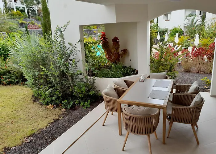 El Palmmar Jardines New 2Bedroom Isora 0-4 House 145M2 With Heated Pool Palm-mar de 105 m² está situado a unos 15 minutos en coche del Karting Club Tenerife, y a unos 6 km de Golf Las Américas. El apartamento también cuenta con una terraza con vistas al jardín.